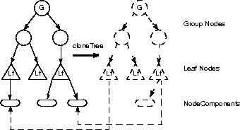 Figure 6-2 shows two instances of NodeComponent objects that are shared and one NodeComponent element that is duplicated for the cloned subgraph.