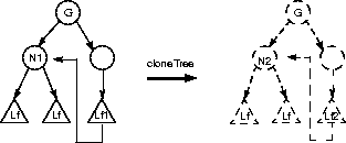 cloneTreemethod. After thecloneTreeoperation is performed, the reference in the cloned leaf node will still refer to the node in the original subgraph-a situation that is most likely incorrect (see Figure 6-3).