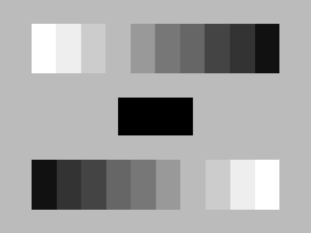 - The center rectangle is pure black (0).