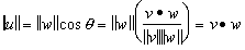 The projection of w onto the unit vector vÆ is a vector u. the length of u is ||w|| times the cosine of the angle between u and vÆ= q