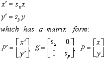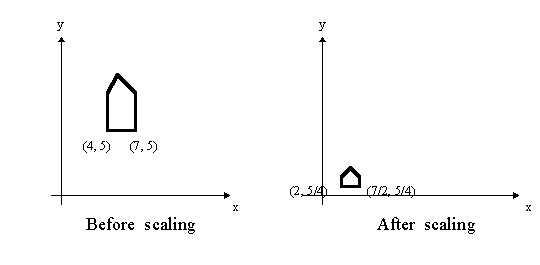 note that the house changes position, since the scaling is about the origin. If scaling were uniform, the amount of scaling in each dimension would be equal.
